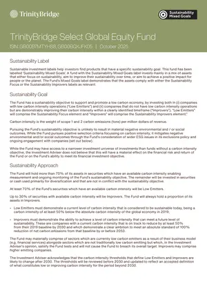 The Close Strategic Alpha Fund was restructured on 30 June 2023 and renamed as the TrinityBridge  Select Global Equity Fund.